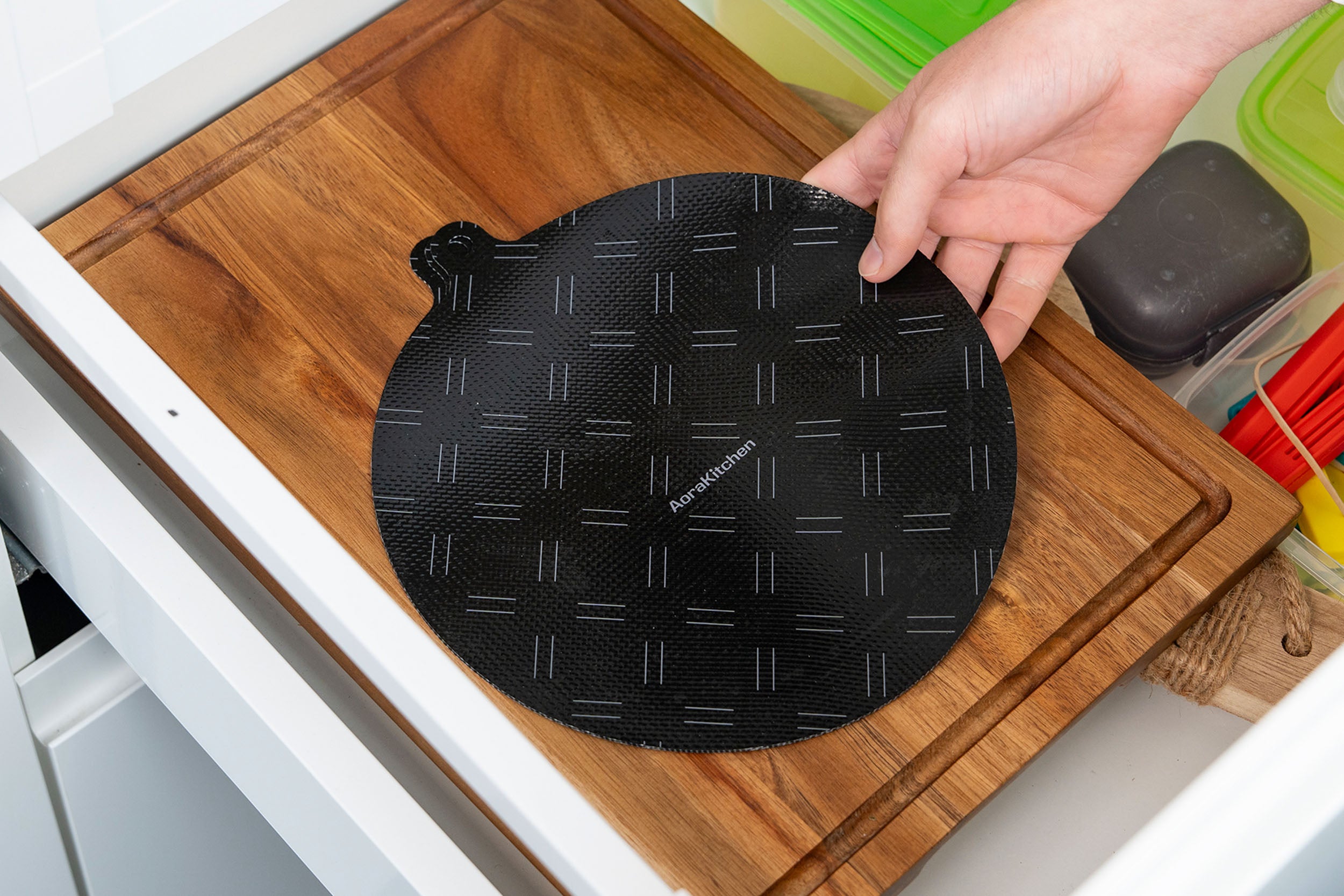 De inductiebeschermer biedt een veilige en stabiele basis voor je pannen tijdens het koken. Hij voorkomt krassen en beschadigingen op het kookoppervlak en zorgt voor een gelijkmatige warmteverdeling.